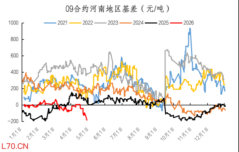 基差方面:今日现货市场主流报价稳定,期货收盘价上涨;以河南地区为基准,基差环比上个交易日走弱,5月合约基差-184元/吨(-69元/吨)。