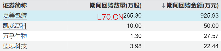 4家上市公司股票获回购,嘉美包装回购金额最高