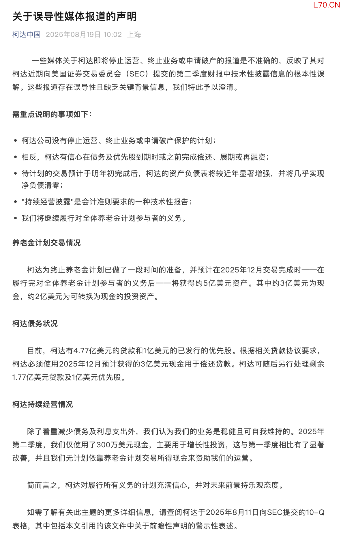 柯达公司澄清:没有停止运营、终止业务或申请破产保护的计划吉林配资行业综合服务平台
