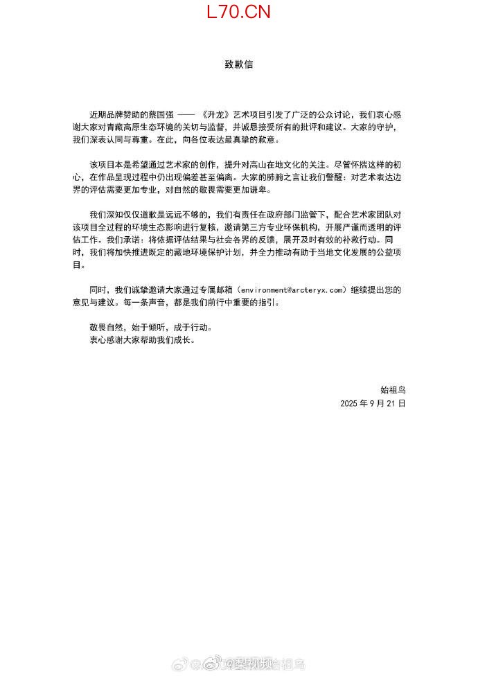 始祖鸟就烟花秀道歉:将依据评估结果展开补救行动